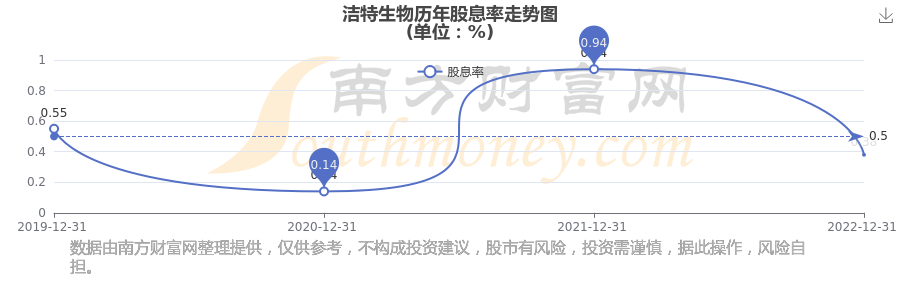 潔特生物最新一次公布的分紅方案:10派0.7124元。