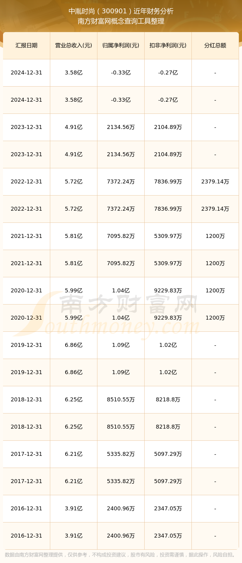 近年中胤時尚分紅派息情況如下表所示: