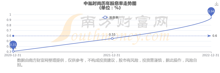 中胤時尚歷年股息率走勢如下圖: