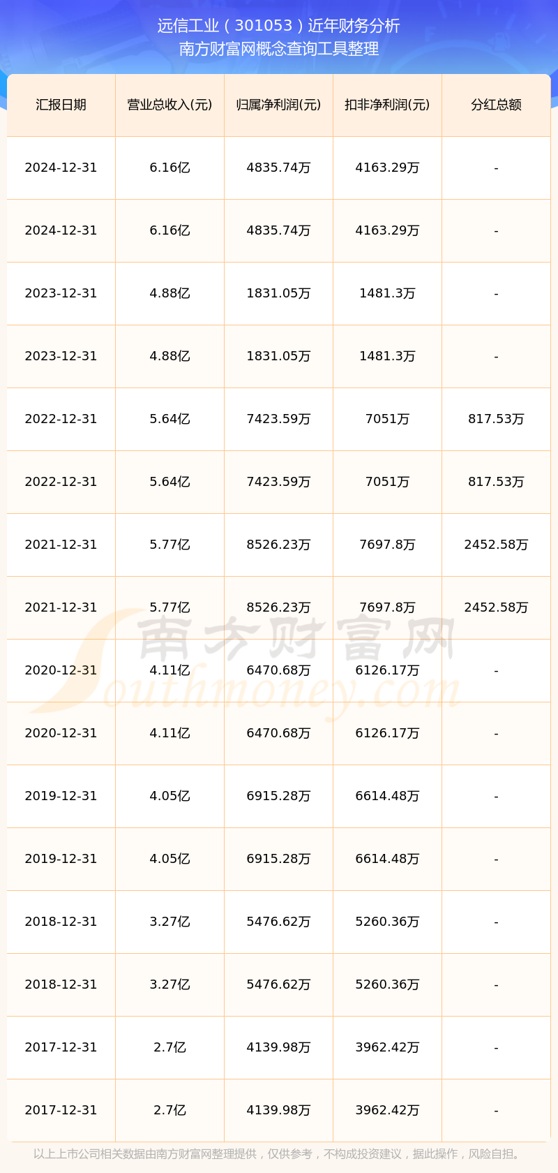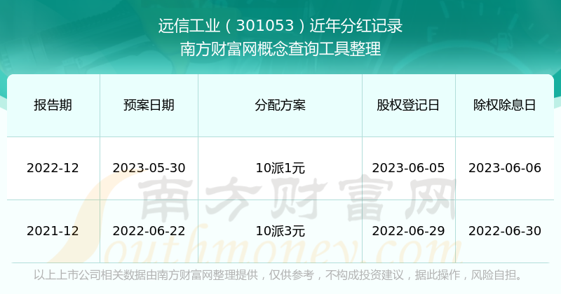 近年遠(yuǎn)信工業(yè)分紅派息情況如下表所示: