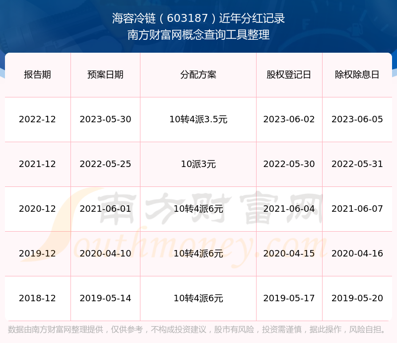 海容冷鏈最新一次公布的分紅方案為10轉(zhuǎn)4派3.5元。本次權(quán)益分派股權(quán)登記日為2023年6月2日,除權(quán)除息日為2023年6月5日,派息日為2023年6月5日。