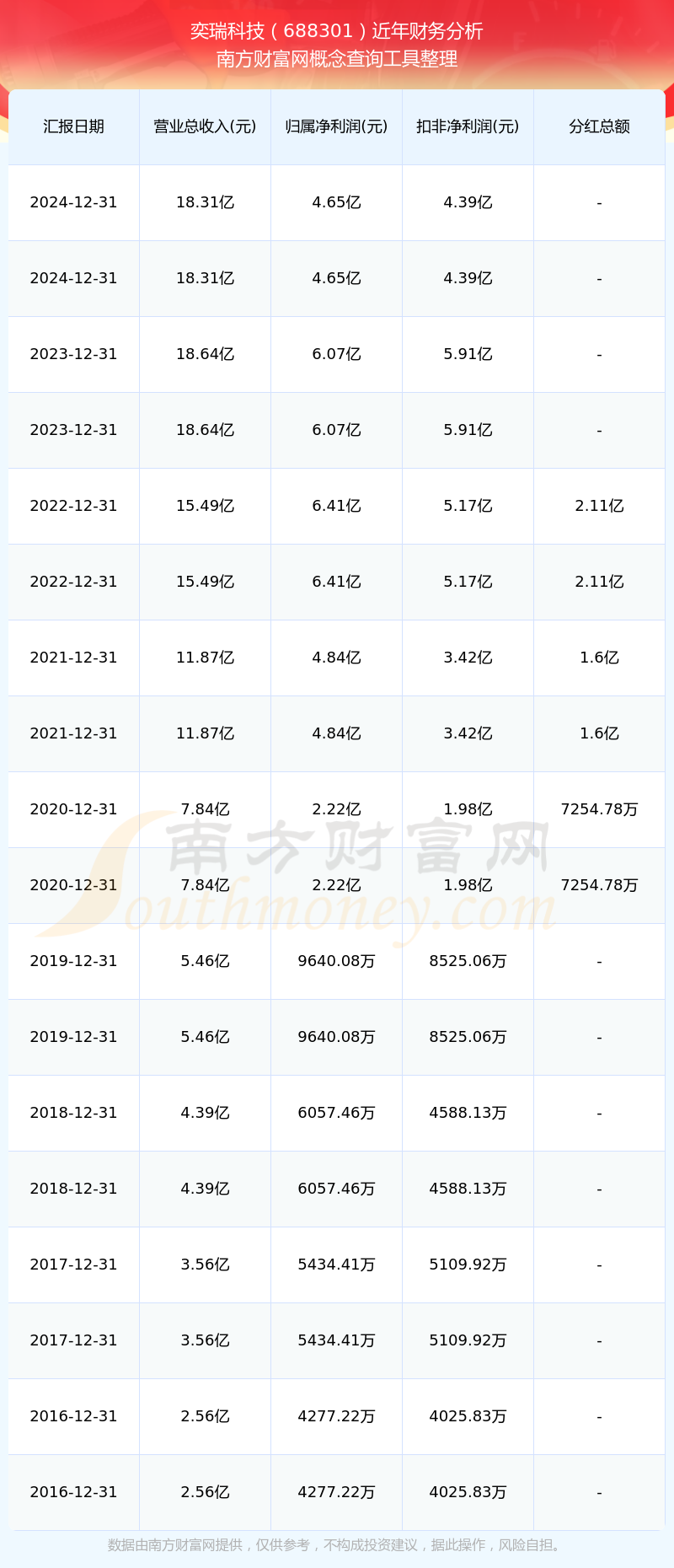 近年奕瑞科技分紅派息情況如下表所示: