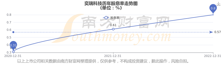 奕瑞科技?xì)v年股息率走勢(shì)如下圖: