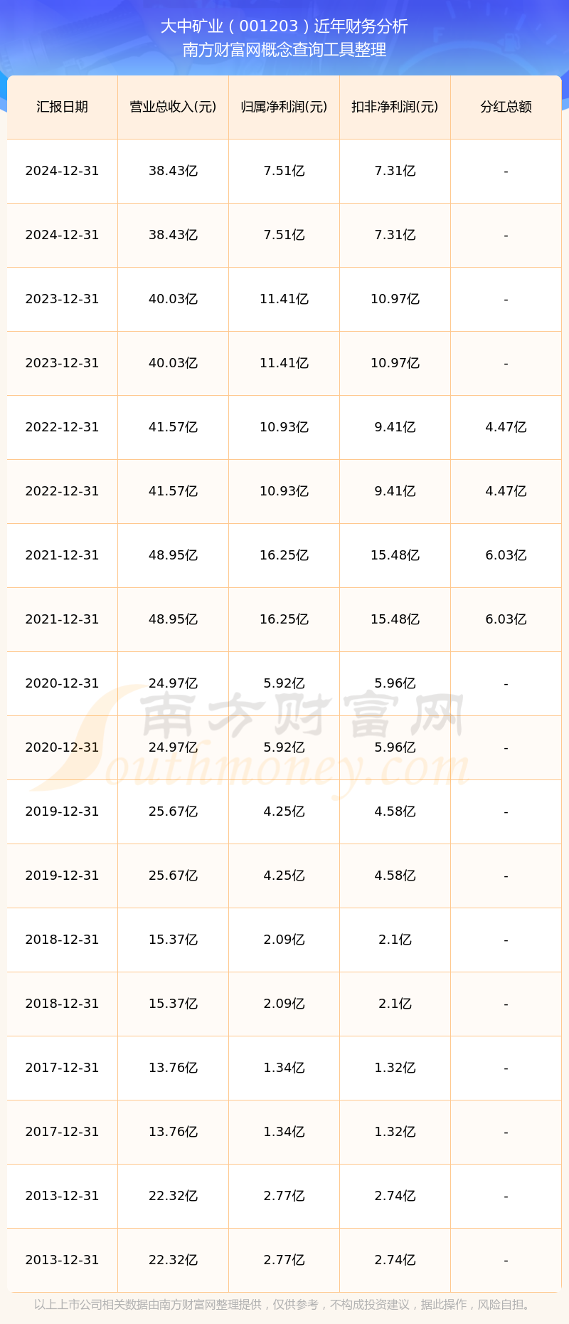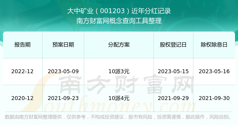 近年大中礦業(yè)分紅派息情況如下表所示: