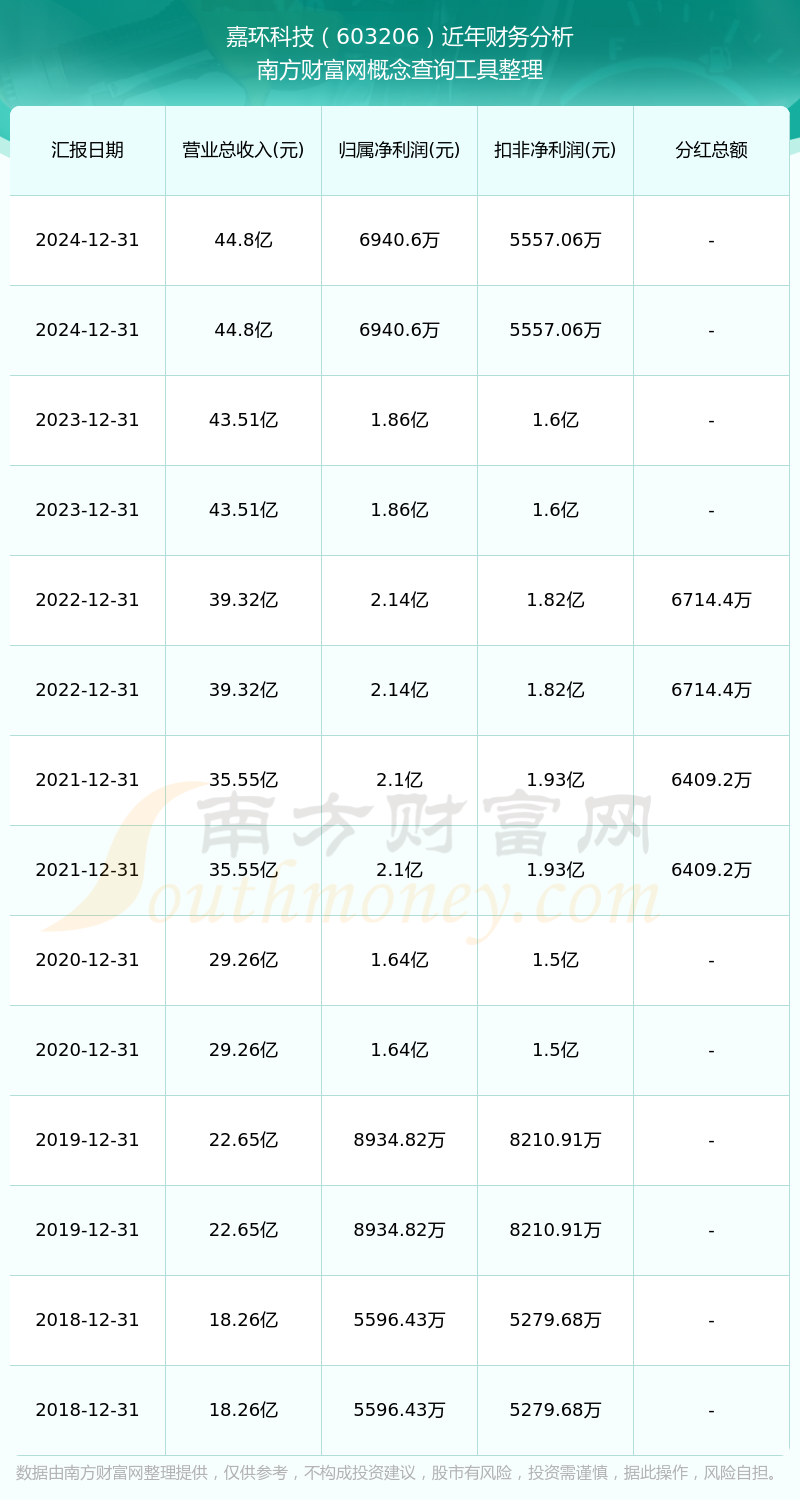 近年嘉環(huán)科技分紅派息情況如下表所示:
