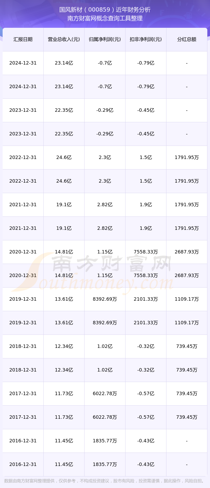 2024年報(bào)顯示,國(guó)風(fēng)新材實(shí)現(xiàn)營(yíng)收23.14億,同比增長(zhǎng)3.55%;凈利潤(rùn)-6972.25萬(wàn),同比增長(zhǎng)-143.49%;毛利率4.57%。