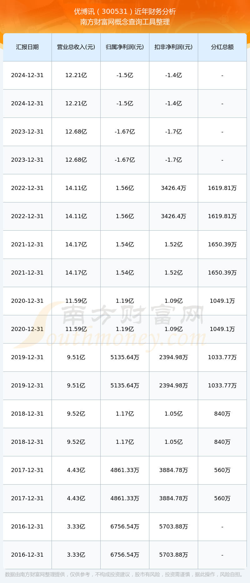 近年優(yōu)博訊分紅派息情況如下表所示: