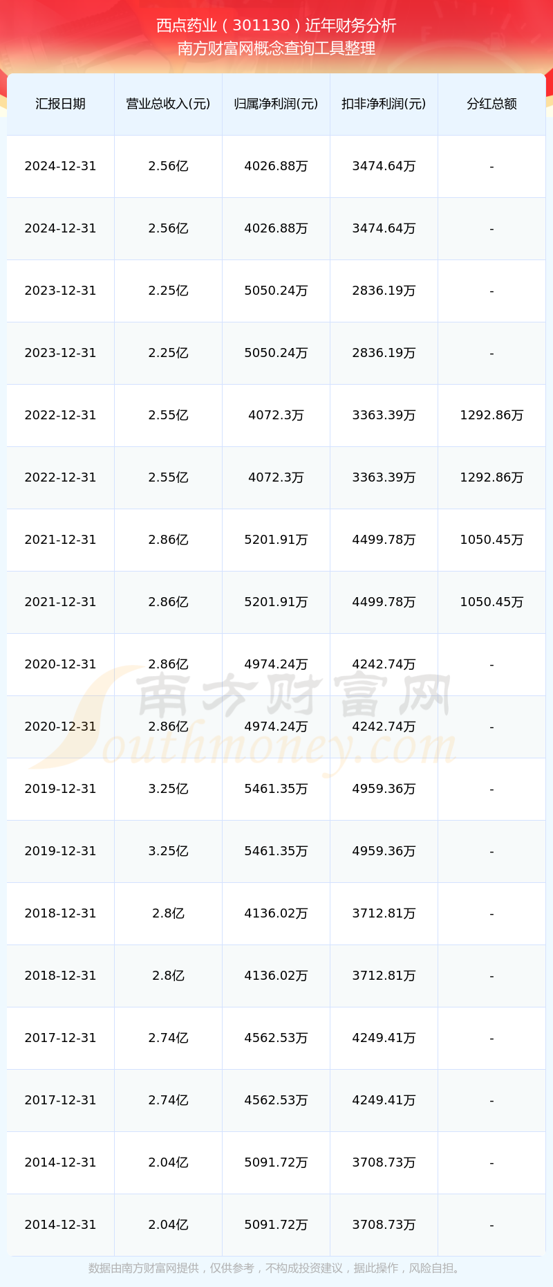 西點藥業(yè)歷年分紅派息情況如下表所示: