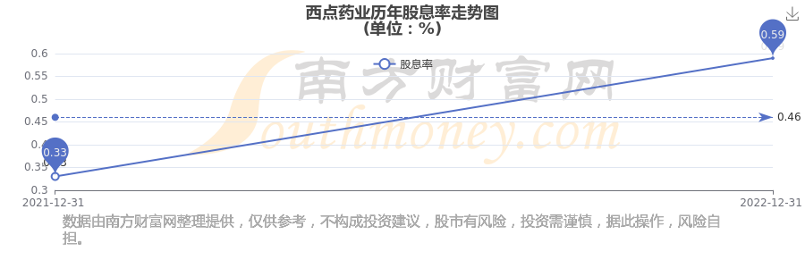 西點藥業(yè)最新一次公布的分紅方案為10派1.6元。本次權益分派股權登記日為2023年6月9日,除權除息日為2023年6月12日,派息日為2023年6月12日。
