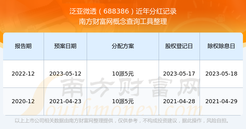 泛亞微透最新一次公布的分紅方案為10派5元。本次權(quán)益分派股權(quán)登記日為2023年5月17日,除權(quán)除息日為2023年5月18日,派息日為2023年5月18日。