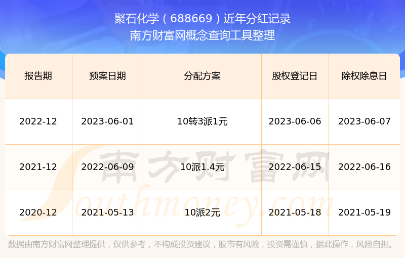 聚石化學最新一次公布的分紅方案:10轉3派1元。
