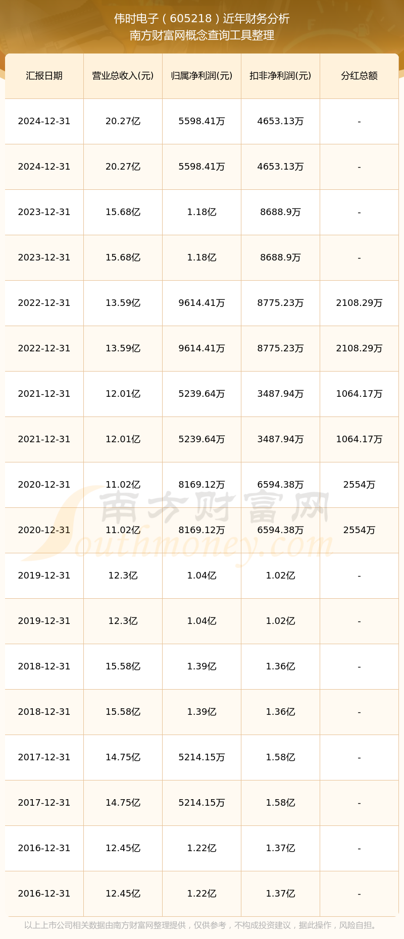 偉時電子2024年總營收20.27億,同比增長29.31%;凈利潤5598.41萬,同比增長-52.56%;銷售毛利率12.65%。