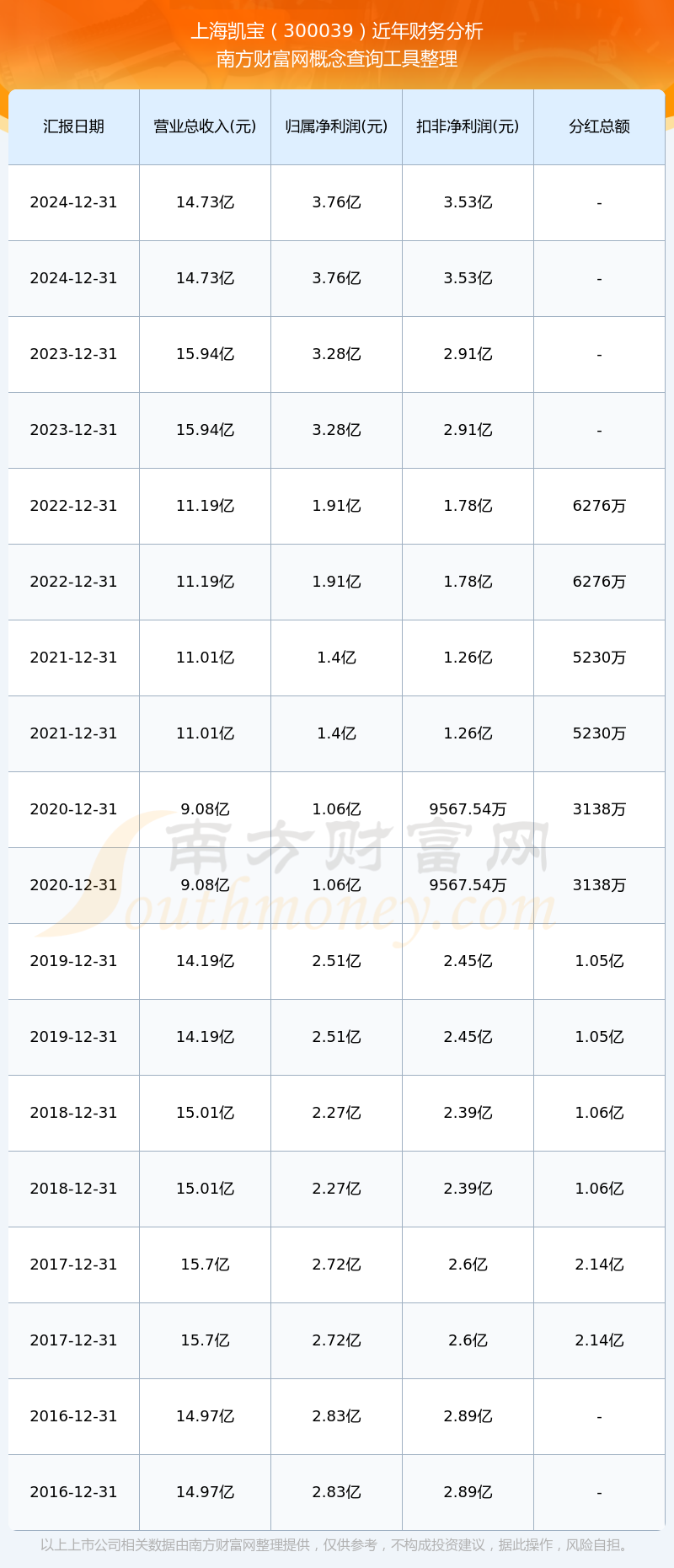 上海凱寶公司2024年實(shí)現(xiàn)營業(yè)收入14.73億元,同比增長-7.57%;凈利潤3.76億元,同比增長14.55%;毛利率81.49%。