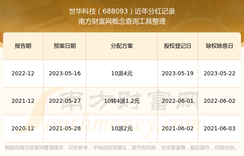 世華科技688093分紅時間: