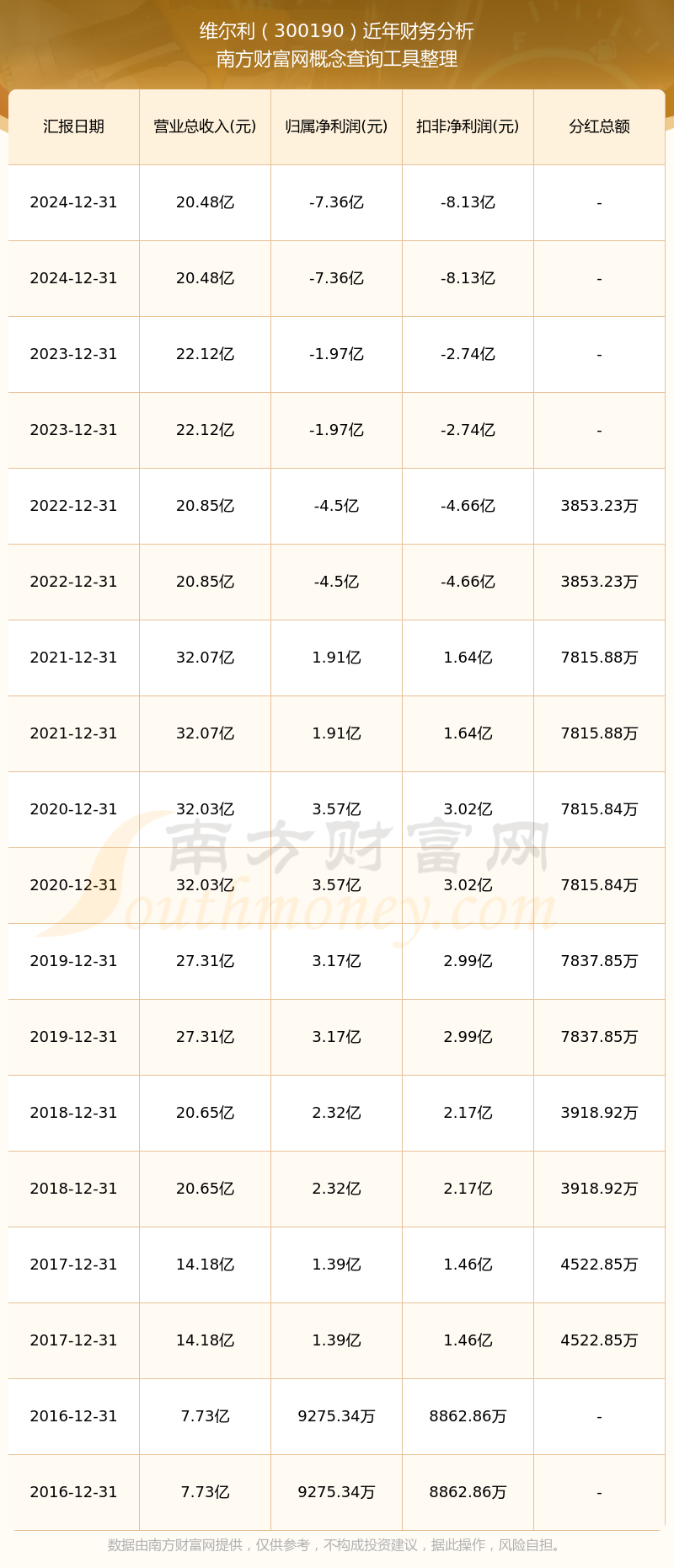 維爾利2024年總營收20.48億,同比增長-7.44%;凈利潤-7.36億,同比增長-273.05%;銷售毛利率9.95%。