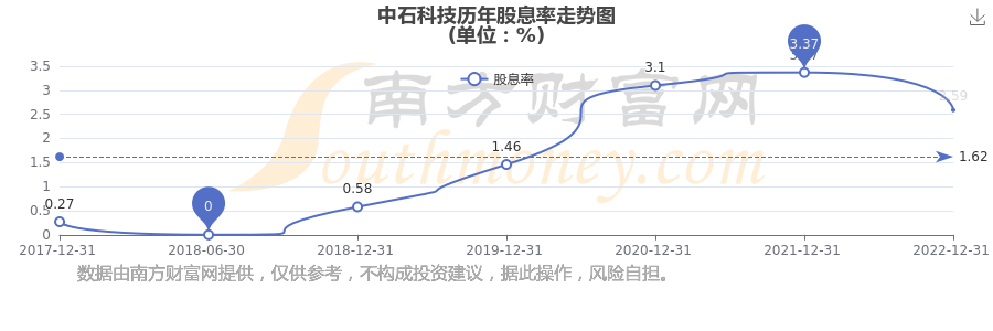 中石科技?xì)v年股息率走勢(shì)如下圖: