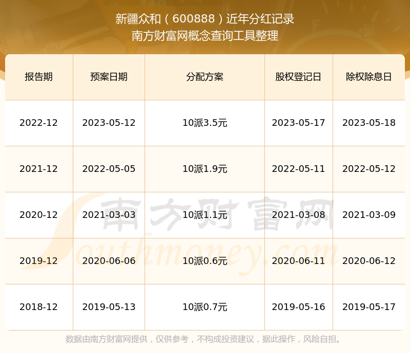 新疆眾和最新一次公布的分紅方案:10派3.5元。