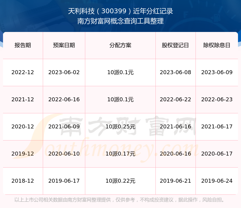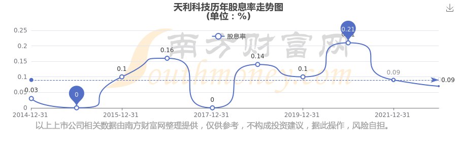 天利科技最新一次公布的分紅方案:10派0.1元。