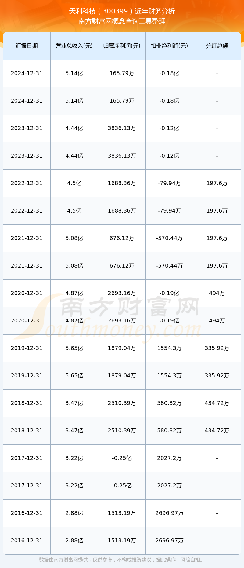 2024年天利科技總營收5.14億,同比增長15.6%;凈利潤165.79萬,同比增長-95.68%;銷售毛利率3.29%。