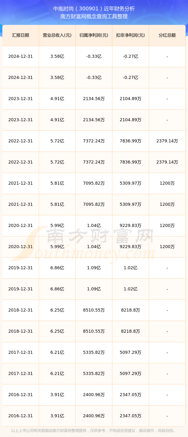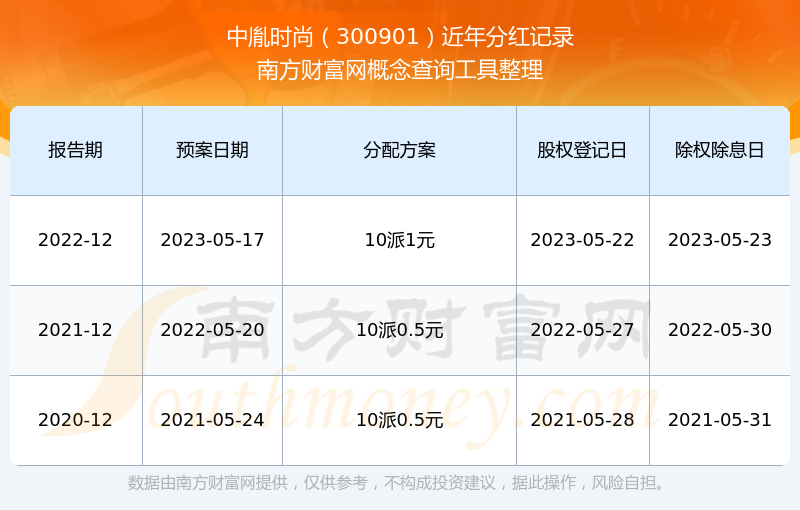 中胤時(shí)尚歷年分紅派息情況如下表所示: