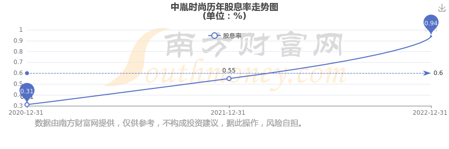 中胤時(shí)尚歷年股息率走勢(shì)如下圖: