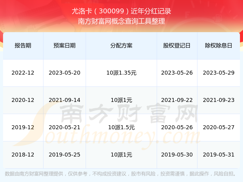 尤洛卡最新一次公布的分紅方案:10派1.35元。