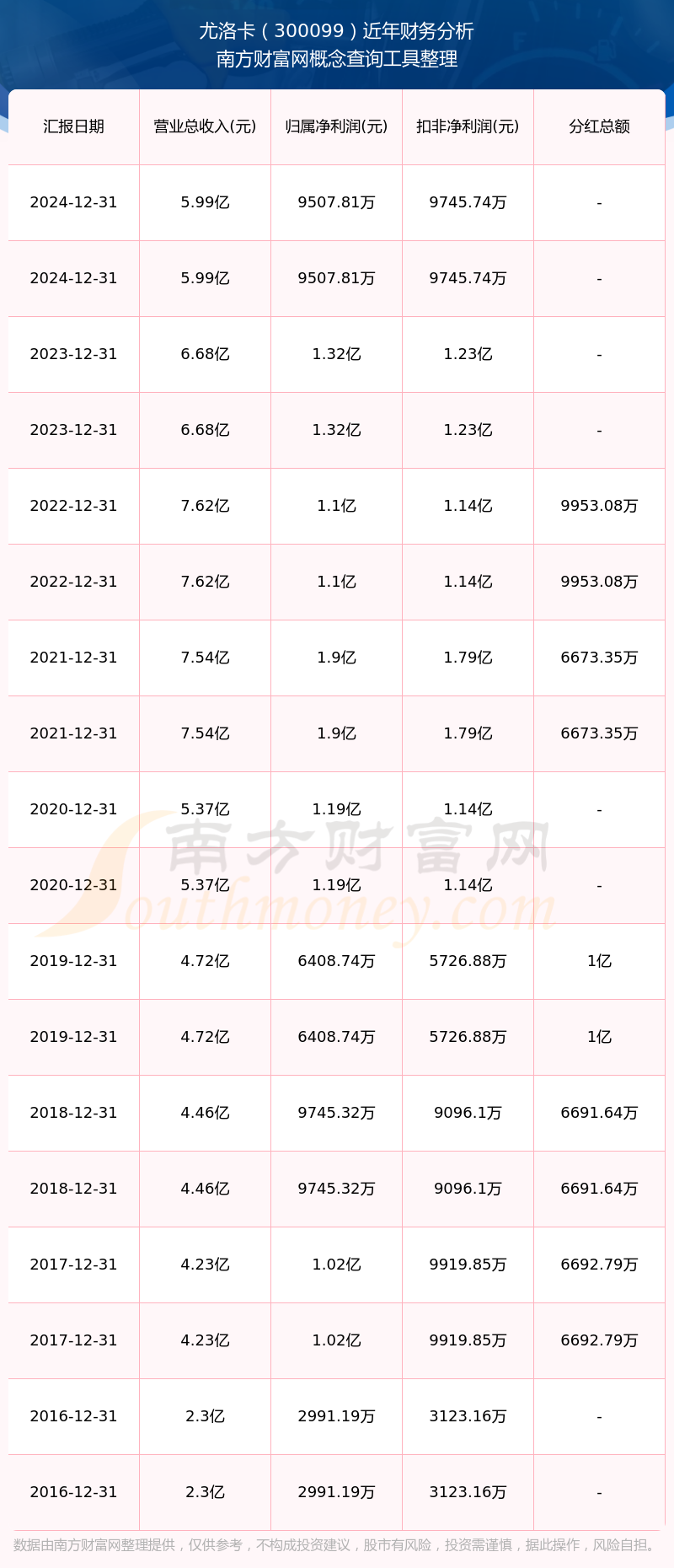 2024年報(bào)顯示,尤洛卡實(shí)現(xiàn)營(yíng)收5.99億,同比增長(zhǎng)-10.33%;凈利潤(rùn)9507.81萬(wàn),同比增長(zhǎng)-28.12%;毛利率46.67%。