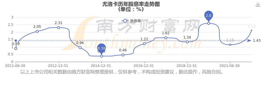 尤洛卡歷年股息率走勢(shì)如下圖: