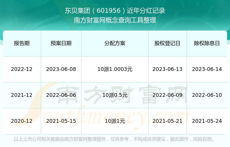 近年東貝集團(tuán)分紅派息情況如下表所示: