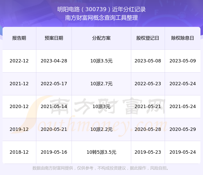明陽電路最新一次公布的分紅方案:10派3.5元。