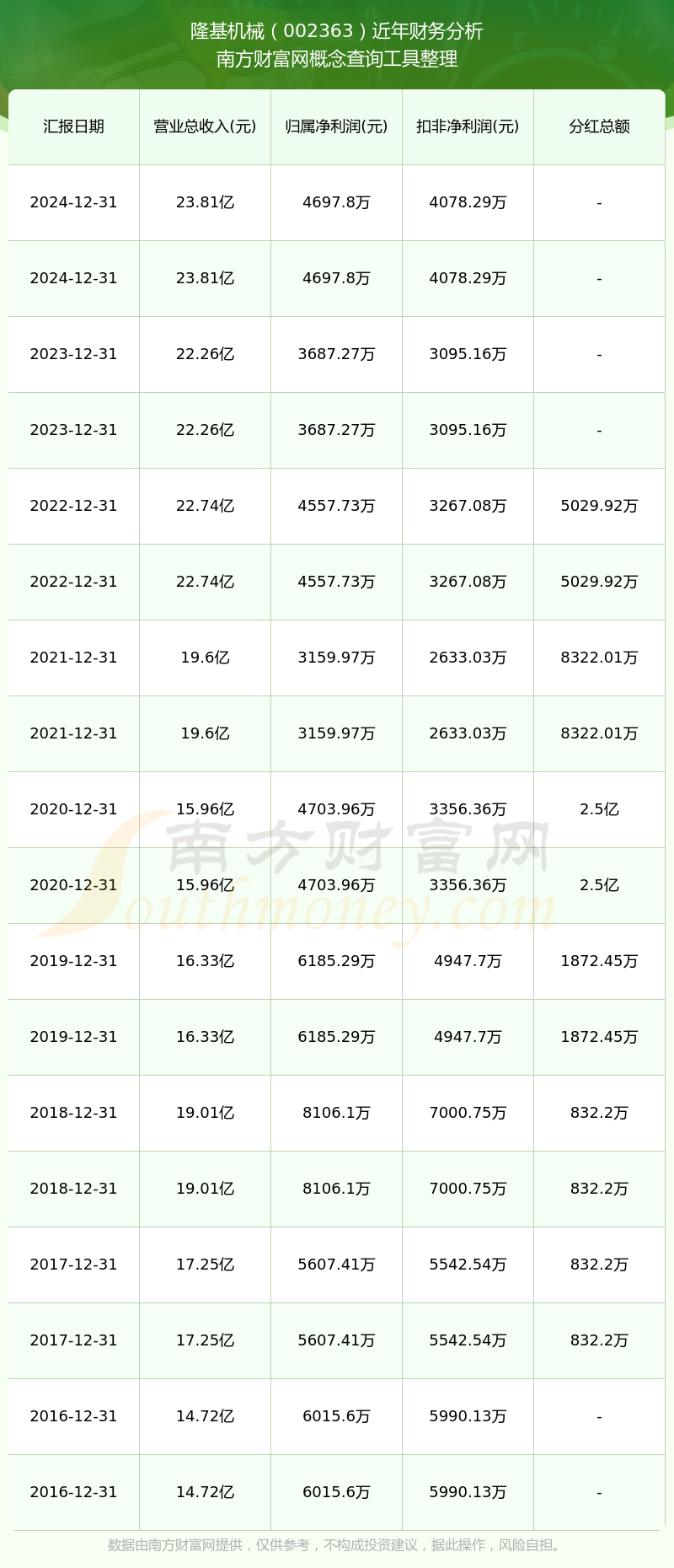 隆基機械2024年總營收23.81億,同比增長6.96%;凈利潤4697.8萬,同比增長27.41%;銷售毛利率9.32%。