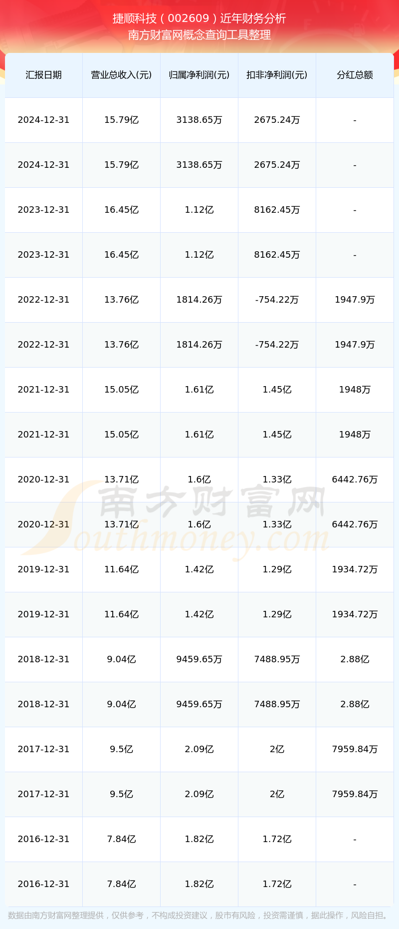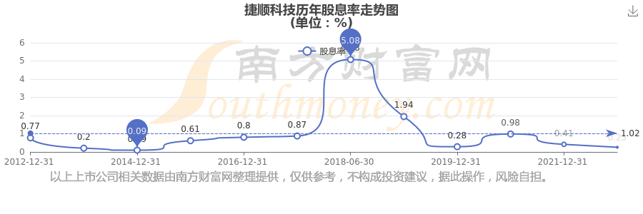 捷順科技?xì)v年分紅派息情況如下表所示: