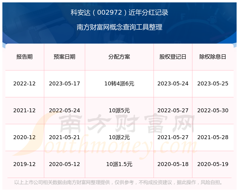 科安達最新一次公布的分紅方案為10轉(zhuǎn)4派6元。本次權(quán)益分派股權(quán)登記日為2023年5月24日,除權(quán)除息日為2023年5月25日,派息日為2023年5月25日。