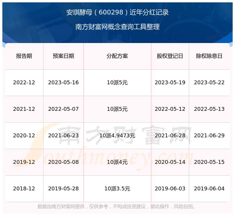 安琪酵母最新一次公布的分紅方案為10派5元。本次權(quán)益分派股權(quán)登記日為2023年5月19日,除權(quán)除息日為2023年5月22日,派息日為2023年5月22日。