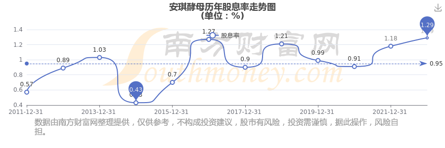 安琪酵母歷年股息率走勢(shì)如下圖:
