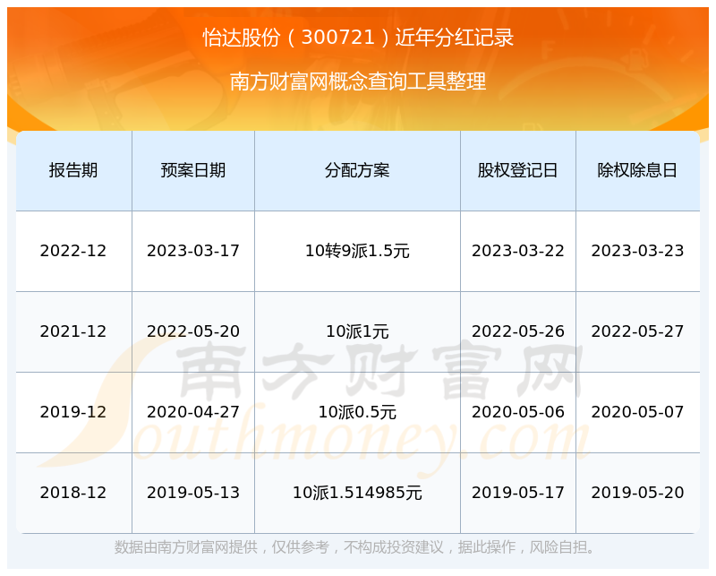 近年怡達(dá)股份分紅派息情況如下表所示: