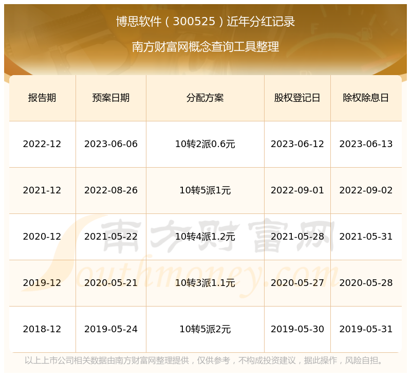 博思軟件最新一次公布的分紅方案:10轉(zhuǎn)2派0.6元。