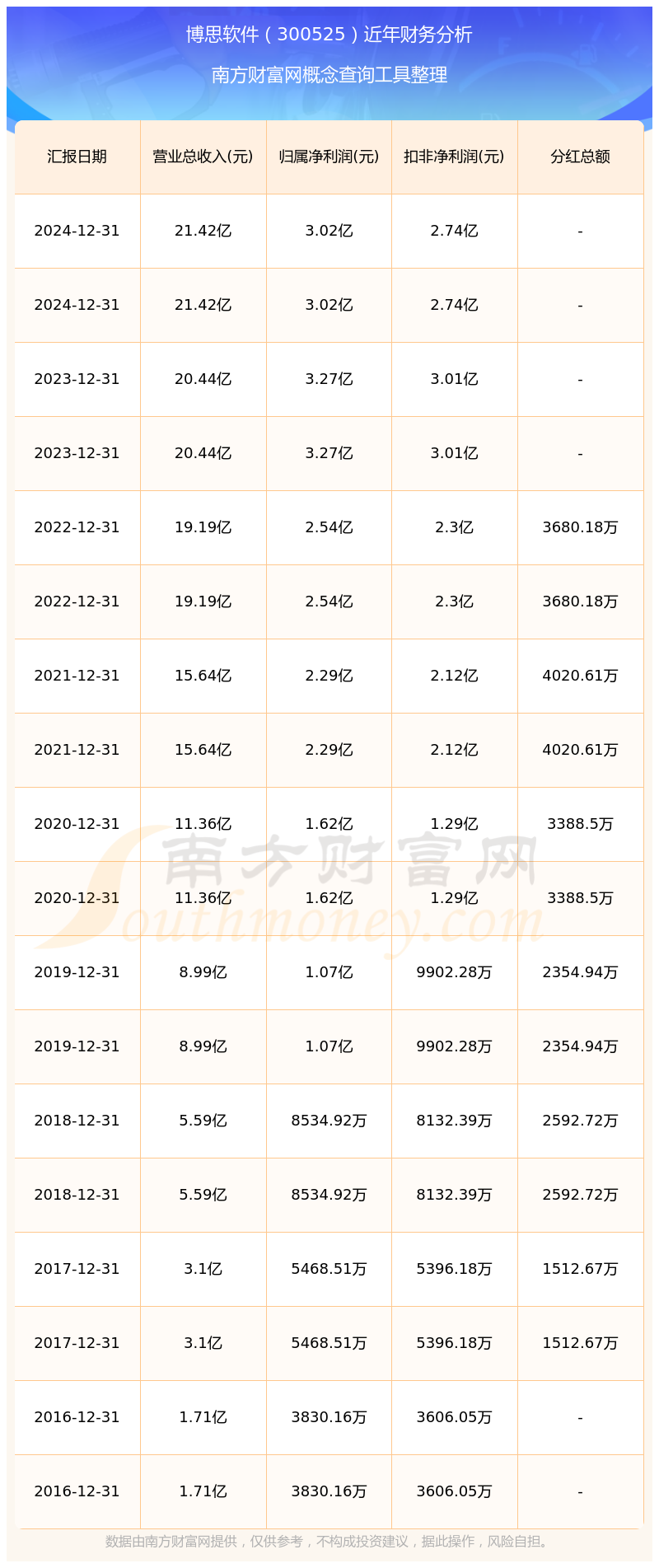 2024年報顯示,博思軟件實現(xiàn)營收21.42億,同比增長4.79%;凈利潤3.02億,同比增長-7.44%;毛利率65.83%。
