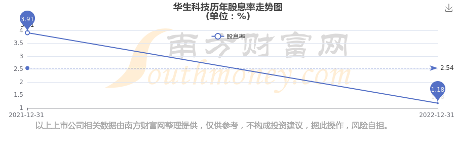 華生科技?xì)v年股息率走勢(shì)如下圖: