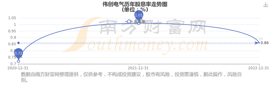 偉創(chuàng)電氣歷年股息率走勢如下圖: