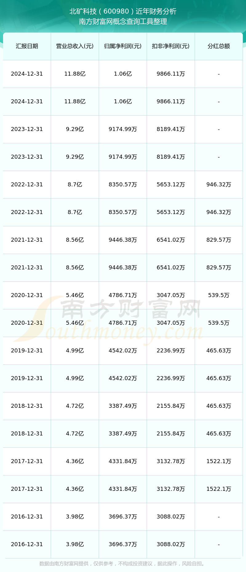 北礦科技?xì)v年分紅派息情況如下表所示: