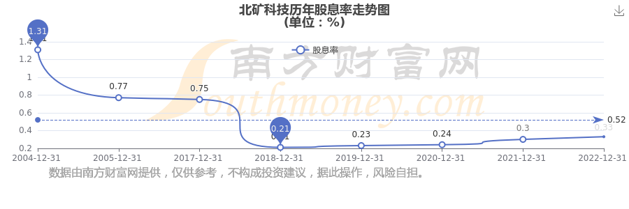 北礦科技?xì)v年股息率走勢(shì)如下圖: