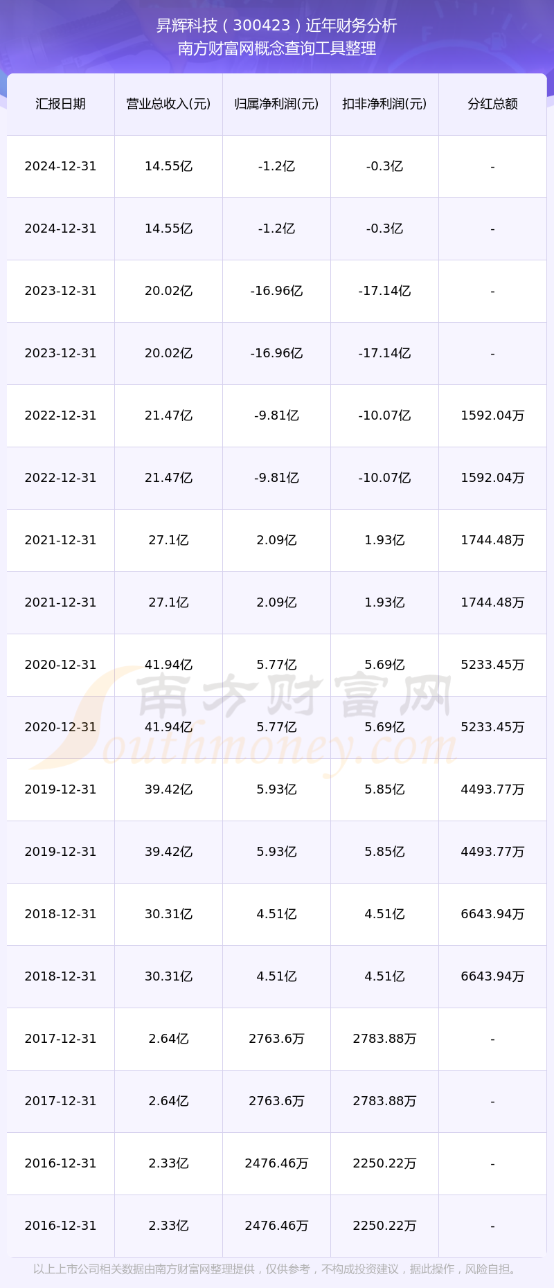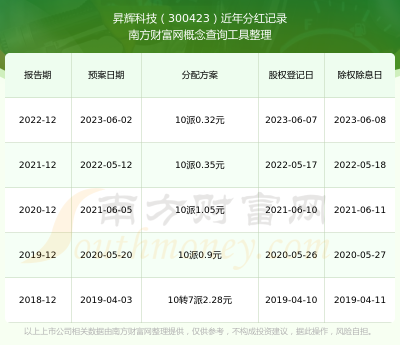 昇輝科技?xì)v年分紅派息情況如下表所示: