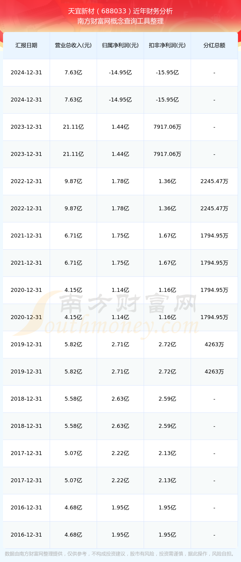近年天宜新材分紅派息情況如下表所示: