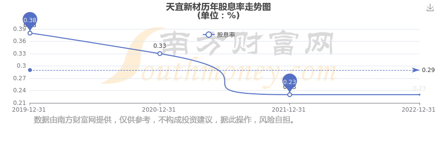 天宜新材歷年股息率走勢(shì)如下圖: