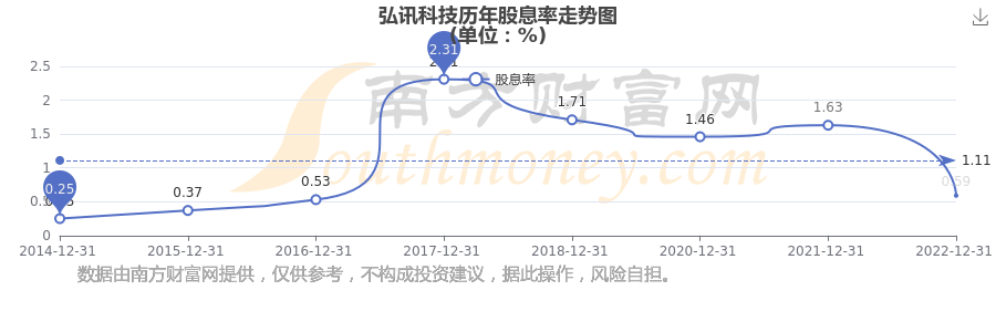 弘訊科技?xì)v年股息率走勢(shì)如下圖: