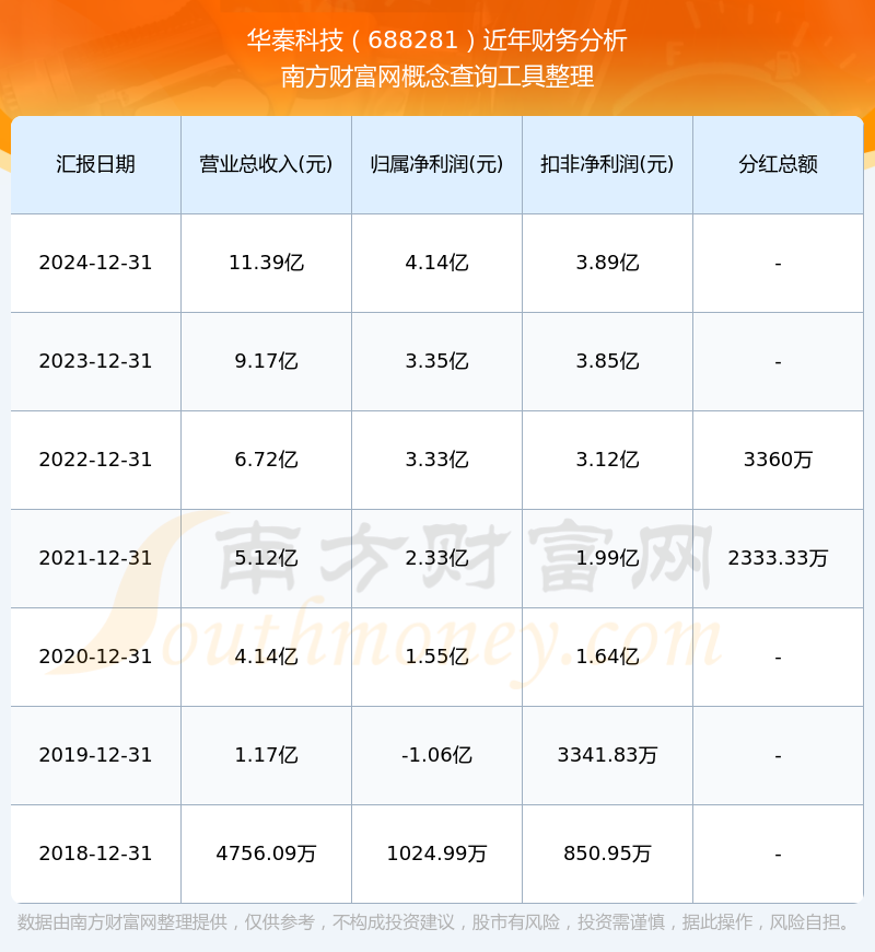 華秦科技?xì)v年分紅派息情況如下表所示: