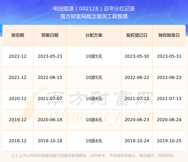 電投能源最新一次公布的分紅方案為10派5元。本次權(quán)益分派股權(quán)登記日為2023年5月30日,除權(quán)除息日為2023年5月31日,派息日為2023年5月31日。
