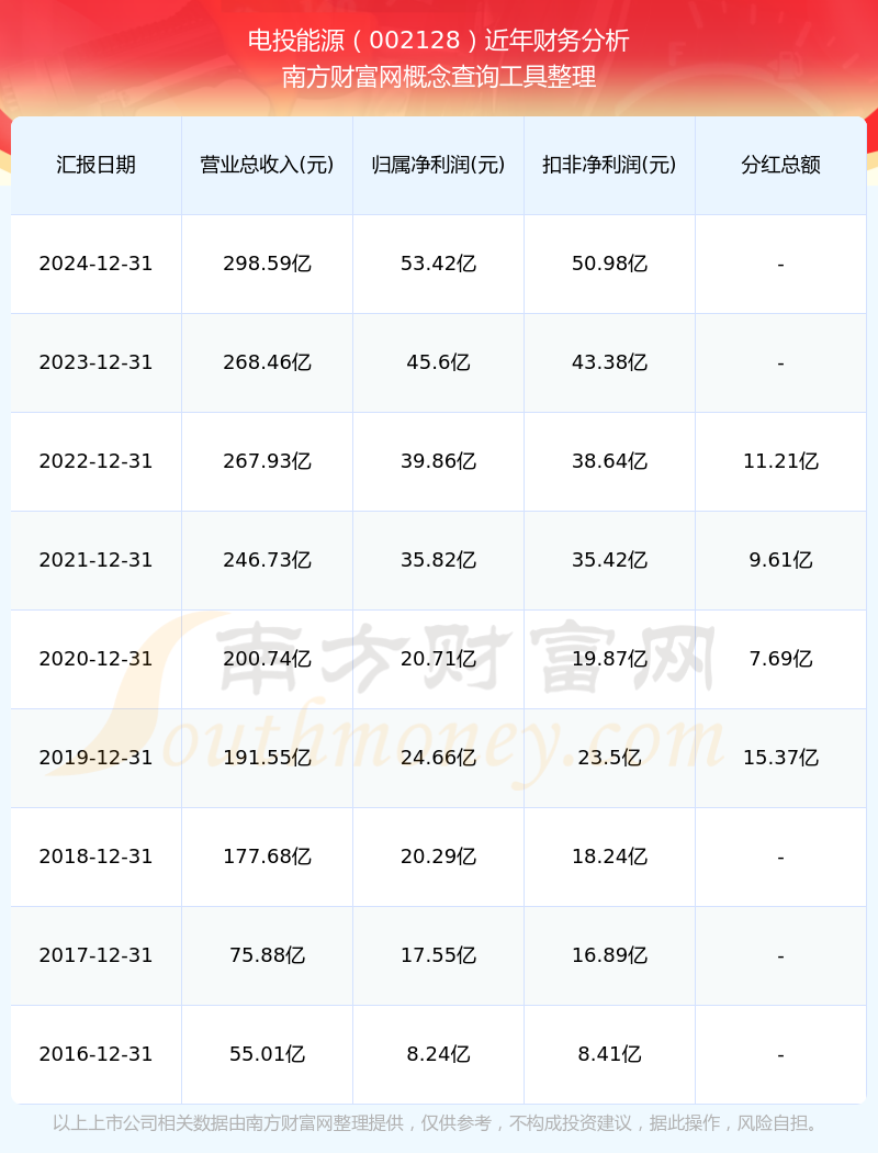 2024年電投能源總營(yíng)收298.59億,同比增長(zhǎng)11.23%;凈利潤(rùn)53.42億,同比增長(zhǎng)17.15%;銷(xiāo)售毛利率34.05%。