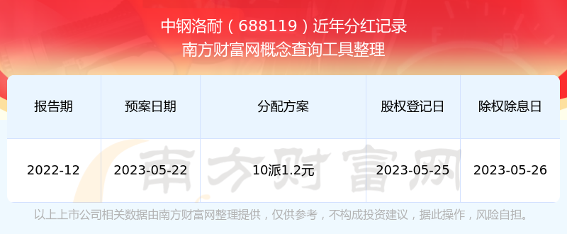 中鋼洛耐最新一次公布的分紅方案:10派1.2元。